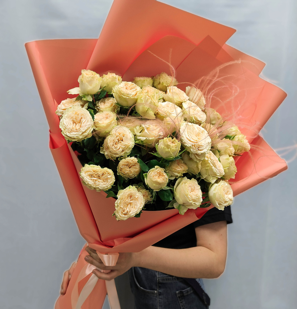 Букет из кустовых пионовидных роз кремового цвета арт. 47537