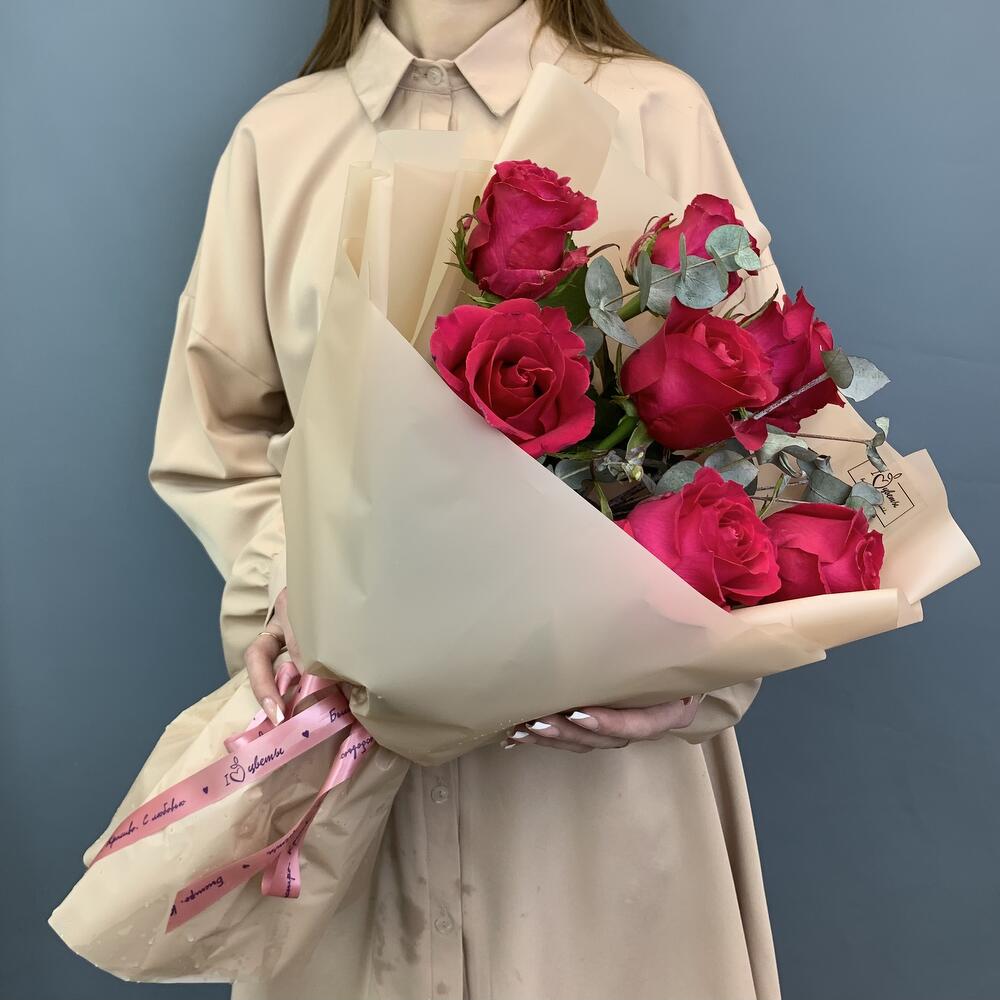 Букет подойдёт для поздравления женщины, подруги, мамы или коллеги. Яркий оттенок роз делает его уместным как для торжественного события, так и в качестве спонтанного подарка. Особенно эффектно смотрится в руках и хорошо воспринимается визуально даже при небольшом количестве стеблей. Розы обладают лёгким ароматом и подойдут большинству получателей.