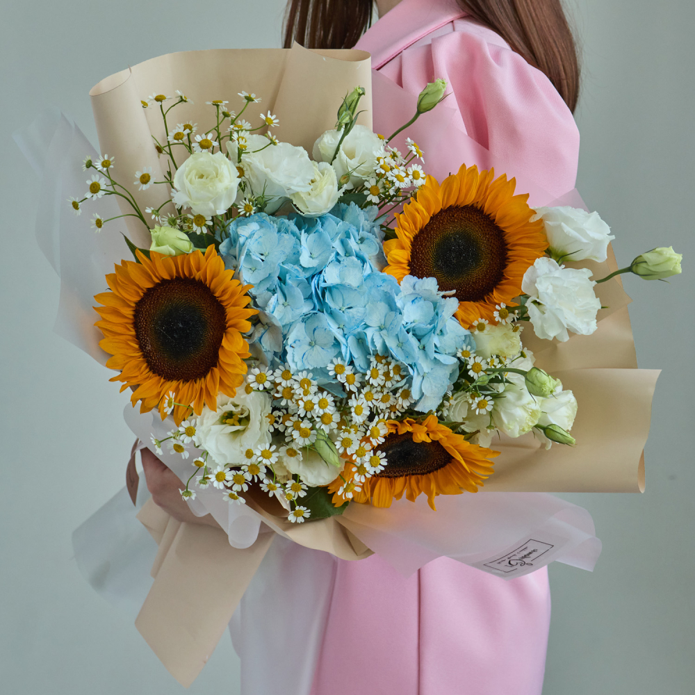 Небольшой букет с гортензией и альстромерией арт. 84571