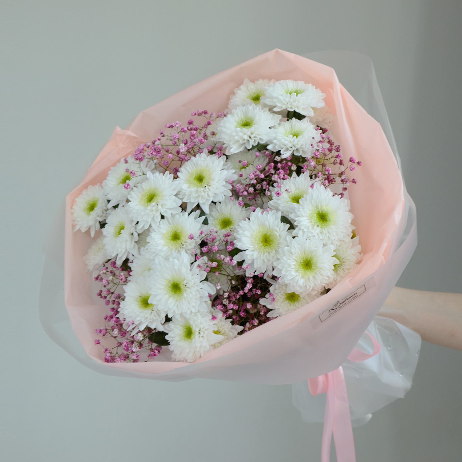 Букет с хризантемой и гипсофилой ГОЛУБОЙ арт. 84572-Г